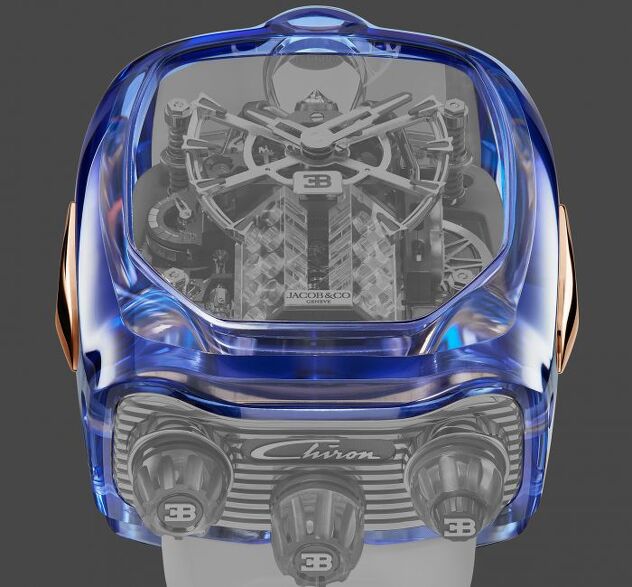 Është një orë e quajtur Bugatti Chiron Blue Sapphire Crystal, e cila ka shumë ngjashmëri me orët e tjera të ngjashme, përmban një kopje plotësisht funksionale të motorit 8.0-litërsh Quad-turbo W16 të Chiron, pistonët e të cilit në të vërtetë funksionojnë ndërsa turbombushësit rrotullohen.